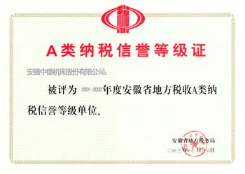 根據《安徽省地稅系統納稅信譽等級管理試行辦法》(皖地稅[200]66號)等有關規定,稅務部門按照納稅人申請、主管地稅機關對納稅人2001年、2002年及2003年稅務登記、納稅申報、稅款繳納、財務管理、納稅資料報送、發票管理等方面的嚴格審核,安徽中德機床股份有限公司被評為:2001—2002年度安徽省地方稅收A類納稅信譽等級單位!