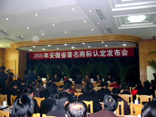 2006年1月10日上午,2005年安徽省著名商標認定發布會在合肥八一賓館隆重舉行,省政府文海英副省長及省工商局領導出席本次發布會。根據《安徽省著名商標認定與管理辦法》的規定,由安徽省著名商標評審委員會審議,并經安徽省工商局局長辦公會議審定,我公司“中德”等111件商標為2005年安徽省著名商標(其中馬鞍山市共有5件商標入選),有效期自20061月起至200912月底止。